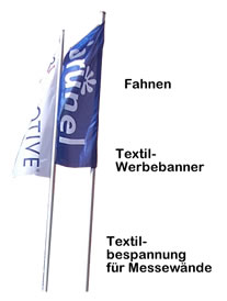 Spezielle fertig konfektionierte Fahnen, Hissflaggen und Beachbanner sowie Fahnenständer finden Sie im Shopbereich Fahnen und Fahnenmasten